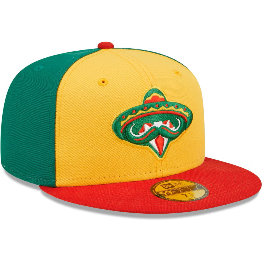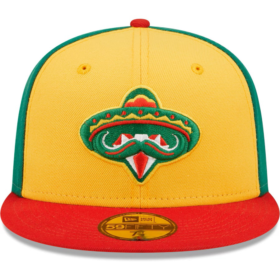 Arkansas Travelers MiLB New Era Men's Yellow/Red 59Fifty Copa De La Diversion Fitted Hat