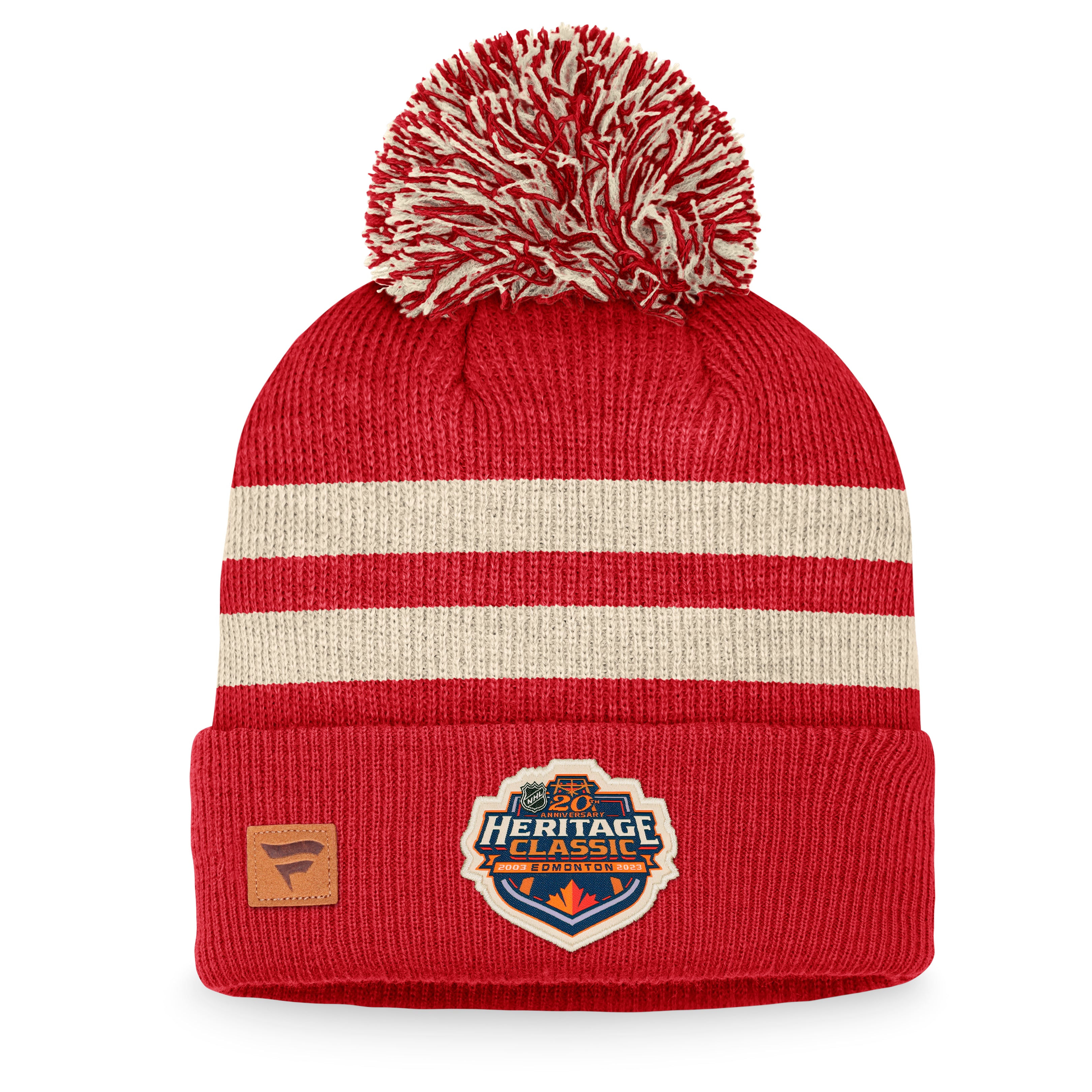 Calgary Flames NHL Fanatics Branded Women's Red 2023 Heritage Classic Cuff Pom Knit Hat