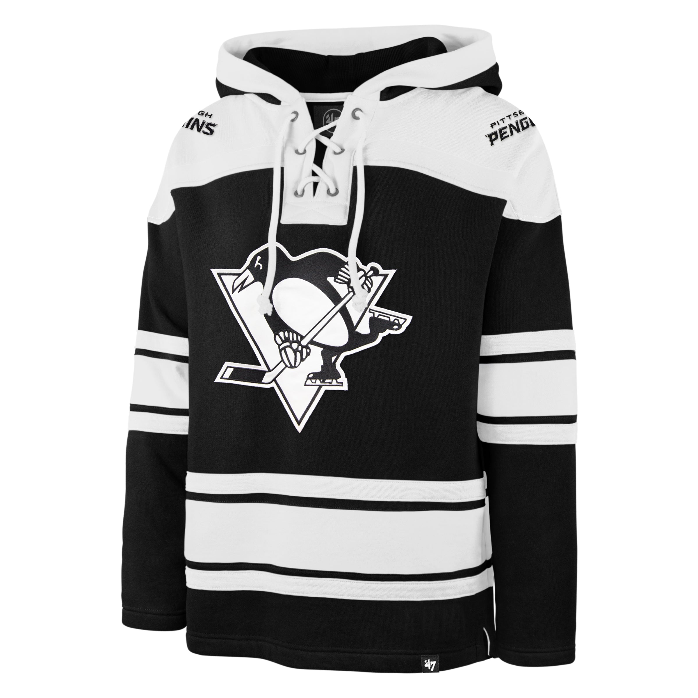 Pittsburgh Penguins NHL 47 Brand Men's Black Series Heavyweight Lacer Hoodie